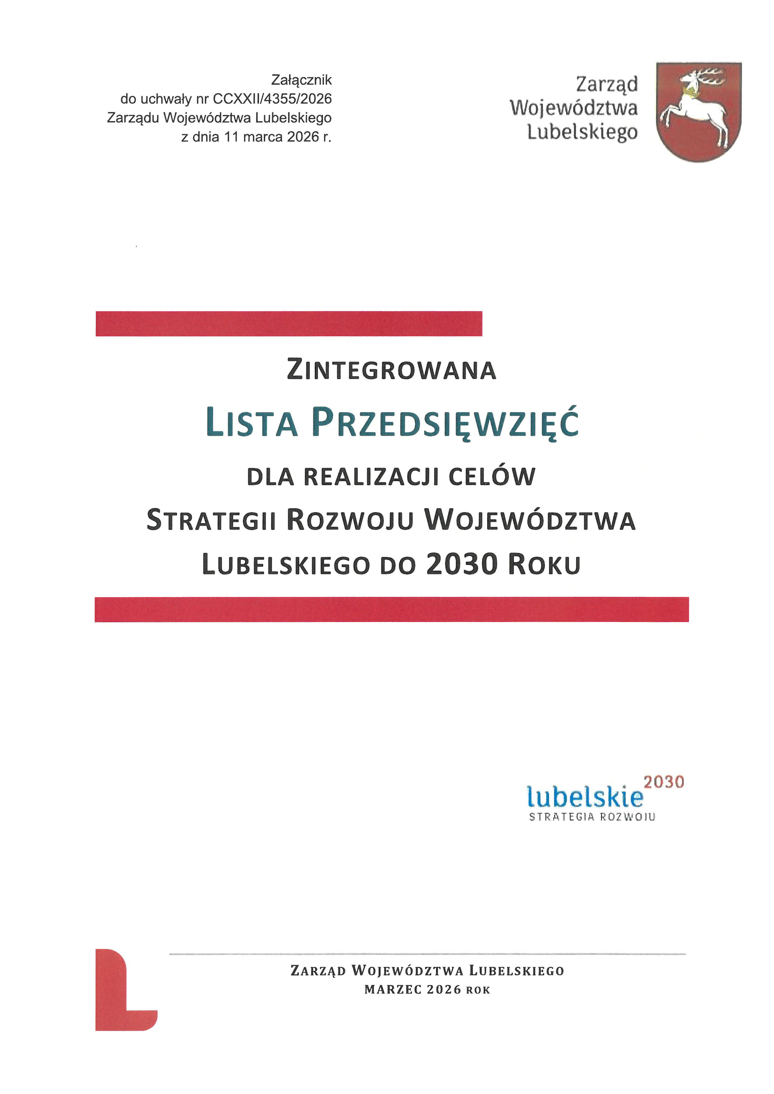 Dnia 29 marca 2021 r. Sejmik Województwa Lubelskiego przyjął uchwałą Nr XXIV/406/2021 Strategię Rozwoju Województwa Lubelskiego do 2030 roku.